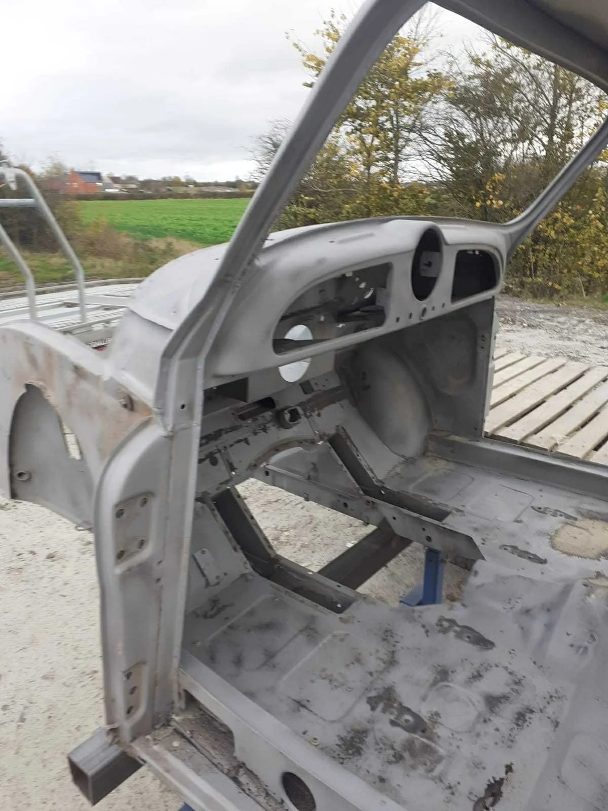 1967 Mark 3 Triumph Spitfire chassis before blasting